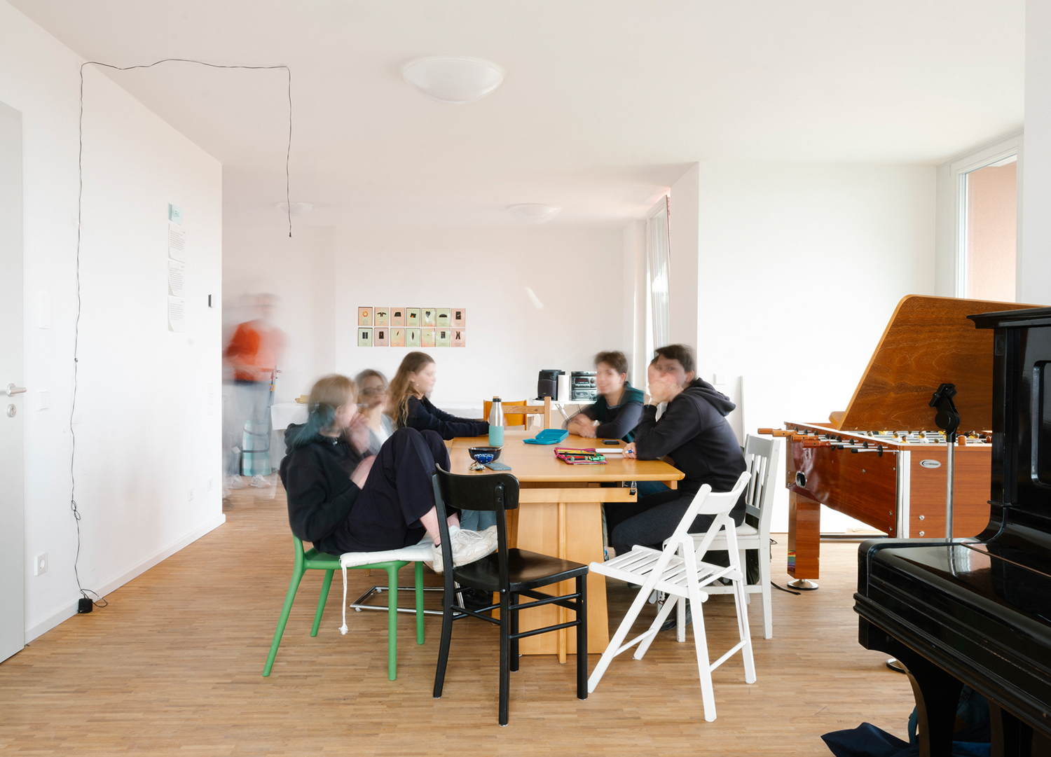 The housing manages to combine a comparatively small living space per resident with numerous communal areas. These are located on the ground floor as a workshop, KARL room, and garden, on the upper floor as flexible „plus rooms“, and on the top floor and roof as large terraces and a garden. These communal areas are accessible to all residents at all time and serve as transitions between the building community and the neighborhood.